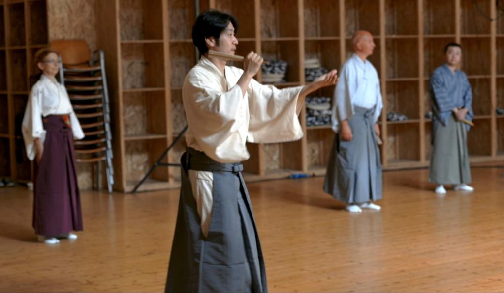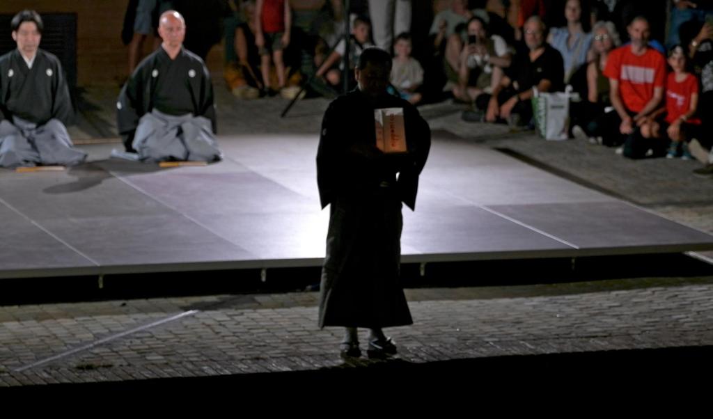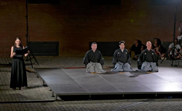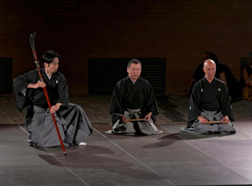 This year the event included four shimai dances from the classical nō repertory. Udaka Tatsushige, Udaka Norishige, and Diego Pellecchia performed selections from Tenko, Fujito, Funa Benkei, and Hagoromo. Each dance was introduced by a dramatic reading of its text by actor Donatella Allegro, adding a rich narrative layer to the performance.